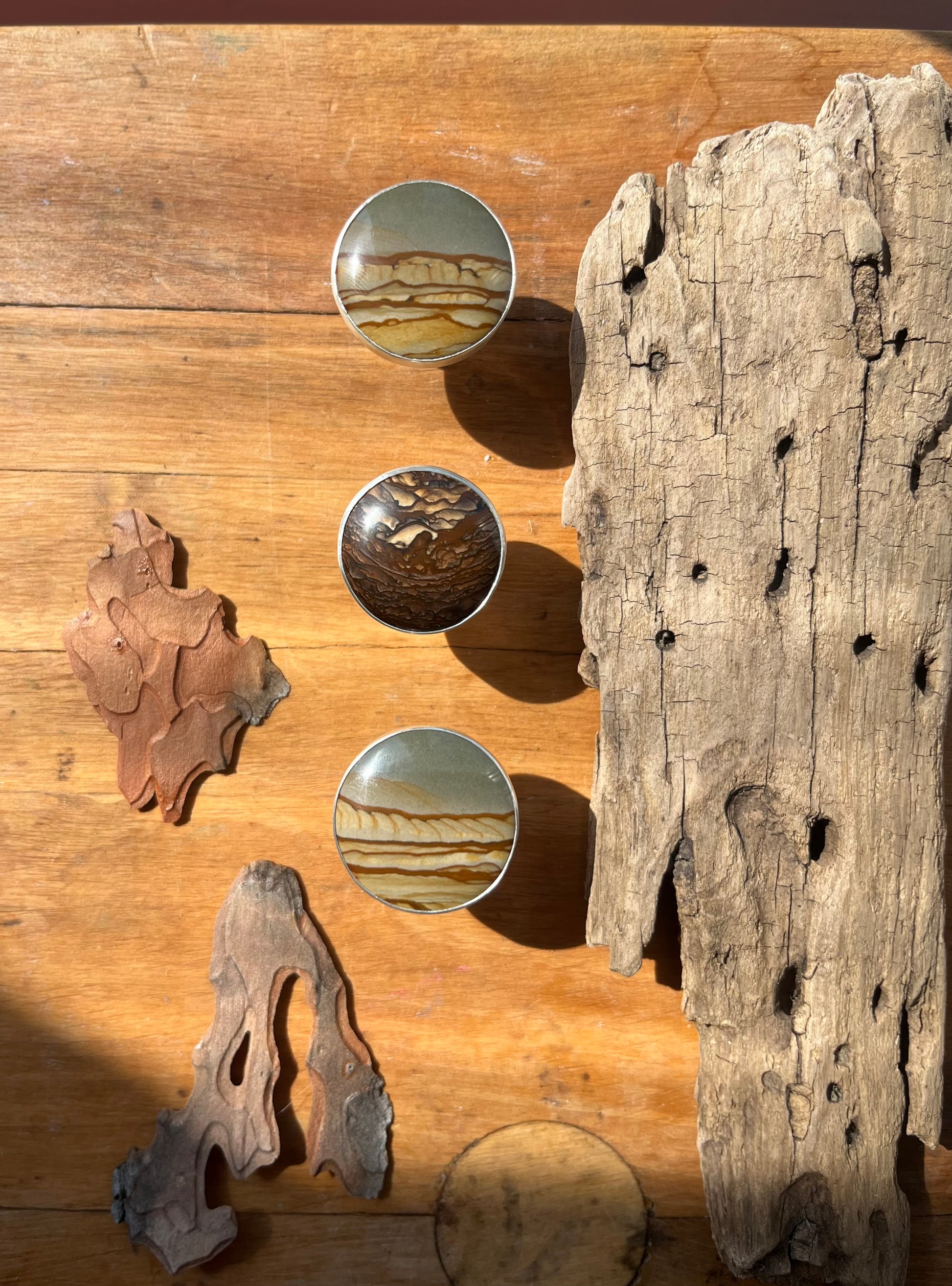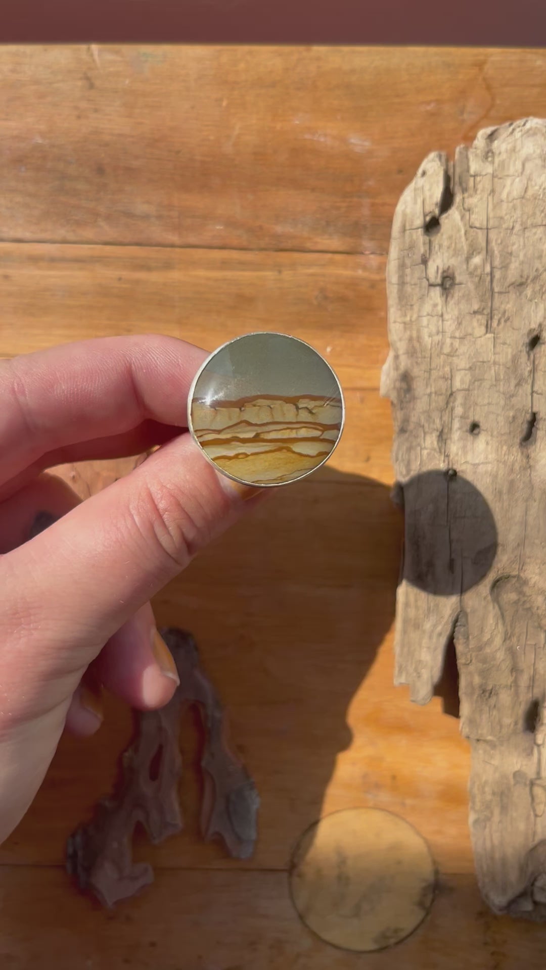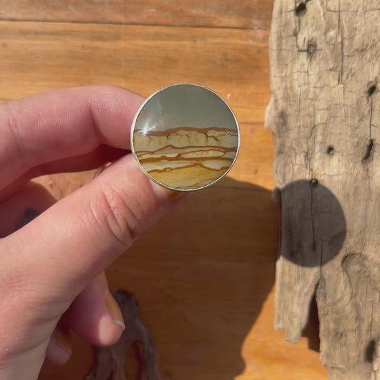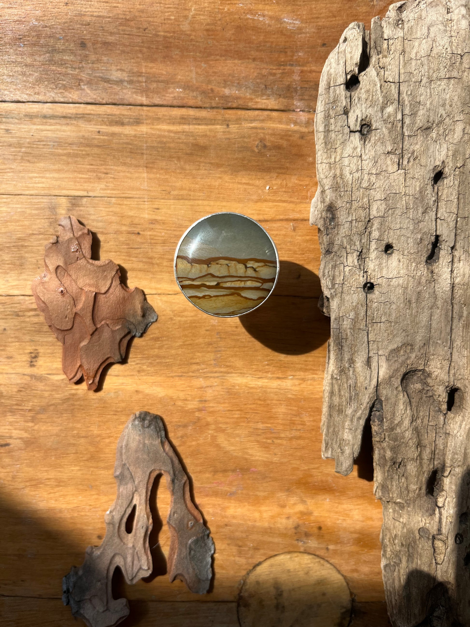 A large cut of cripple creek jasper from Oregon wrapped in sterling silver.